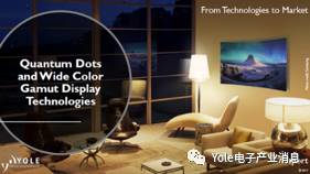 量子点(QDs)将成为新一代超高清电视的领导宽色域技术。根据YoleDéveloppement报告Quantum Dots and Wide Color Gamut Display Technologies,2017年销售的电视机中有600多万台将采用量子点技术,而预计未来5年内该数字将暴增至超过7500万台。降低成本、改善性能和新体系结构,这将进一步提高色彩渲染、效率、视角和对比度。