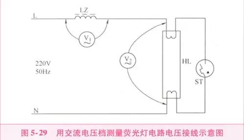 如图5-29所示为测量日光灯电路电压的接线示意图。