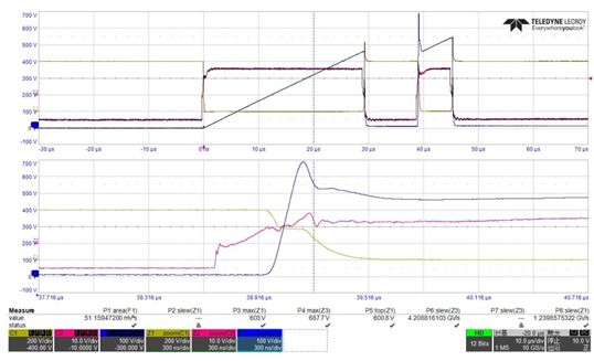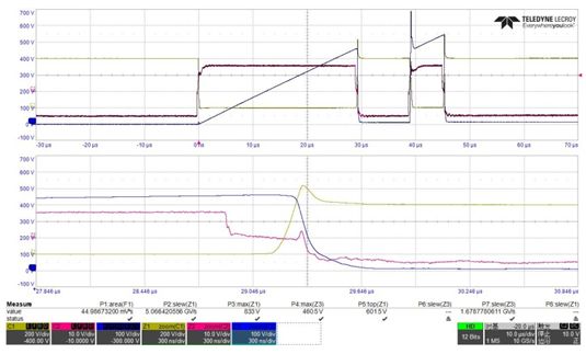 在该时刻,重点是观察关断之后电压和电流是否存在不合适的震荡。