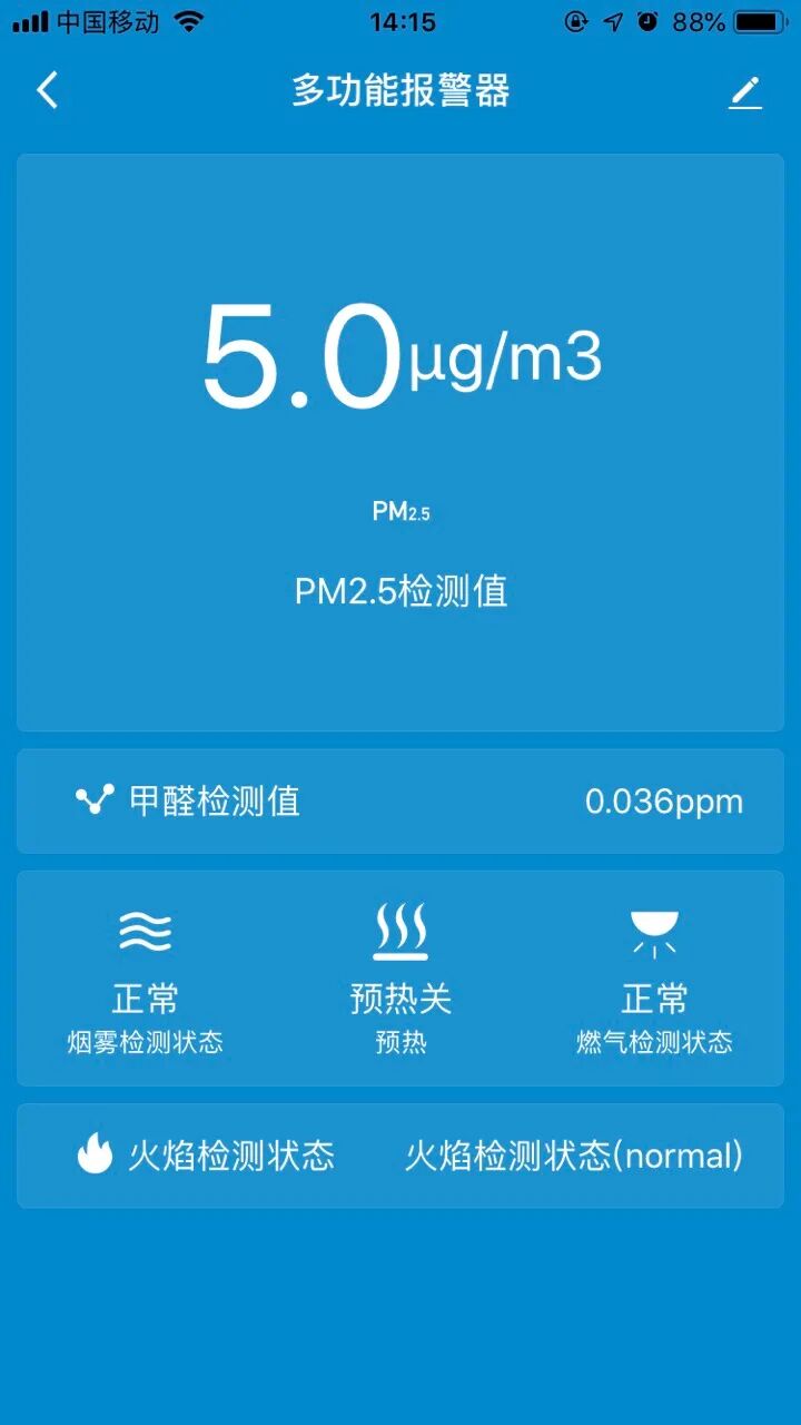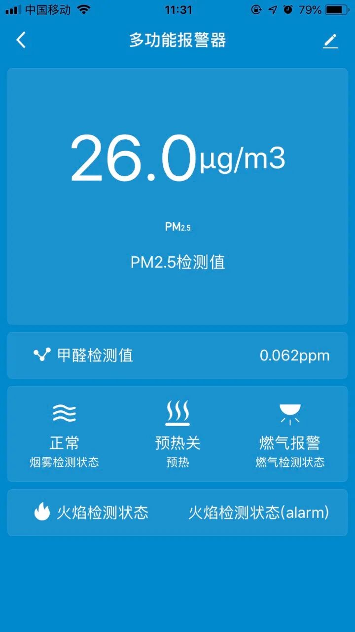 当烟雾,燃气或者火焰三者中有一种的浓度大于设定值,则 App 会显示报警状态,并且断开 220V 电压。