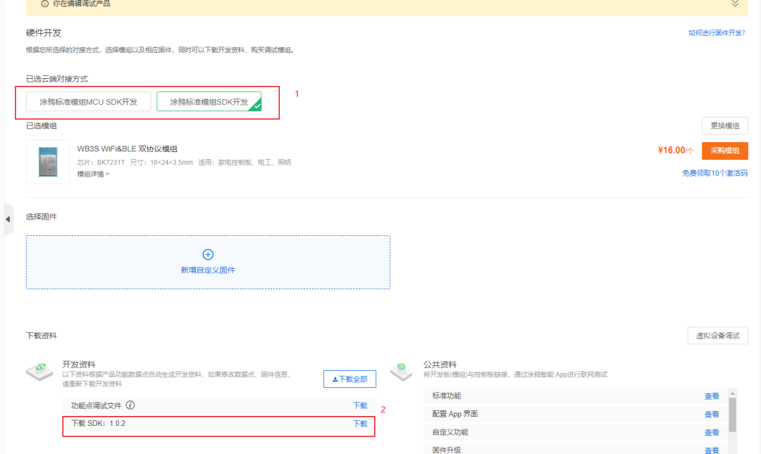 我们选择 SDK 开发,使用 WB3S 模组进行开发。