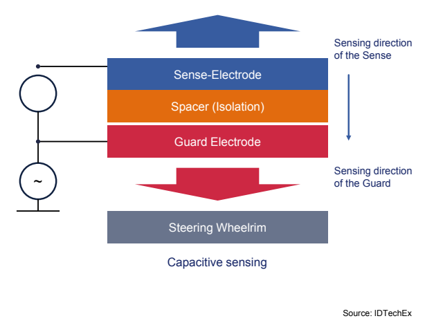 电容传感是一种成熟的技术,已在触摸屏和触摸传感按钮等中应用多年。由于其在座椅和方向盘中的潜力,截至2023年,一些试点项目和车辆使用了电容传感器。