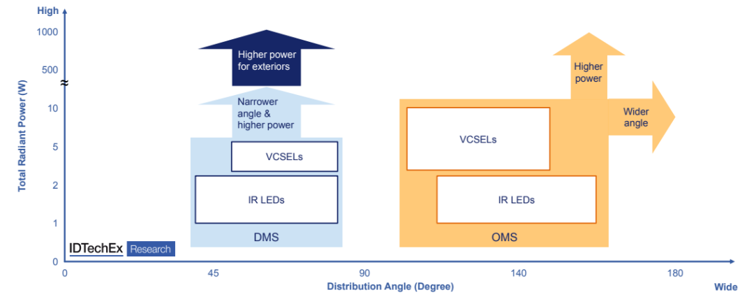 尽管DMS和OMS有很大的重叠和相似之处,但两者对IR LED和VCSEL的照明功率和分布角度要求有所不同。