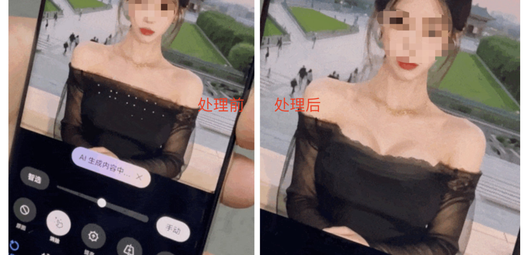 可是用Pura 70 AI涂抹后,一键清除了衣服,变成了超低领设计。