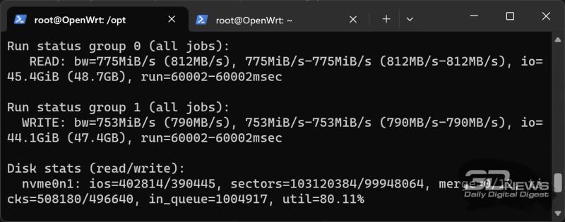然而,如果您使用 fio 直接在 BPI-R4 上运行 SSD 基准测试,则会发现 Intel 760p 不喜欢读取 1 MB 块 - 文件服务器的性能可能会因此受到影响。 128 KB 块的读取速度为 812 MB/s,但这个大小对于 SMB 协议来说并不理想。
