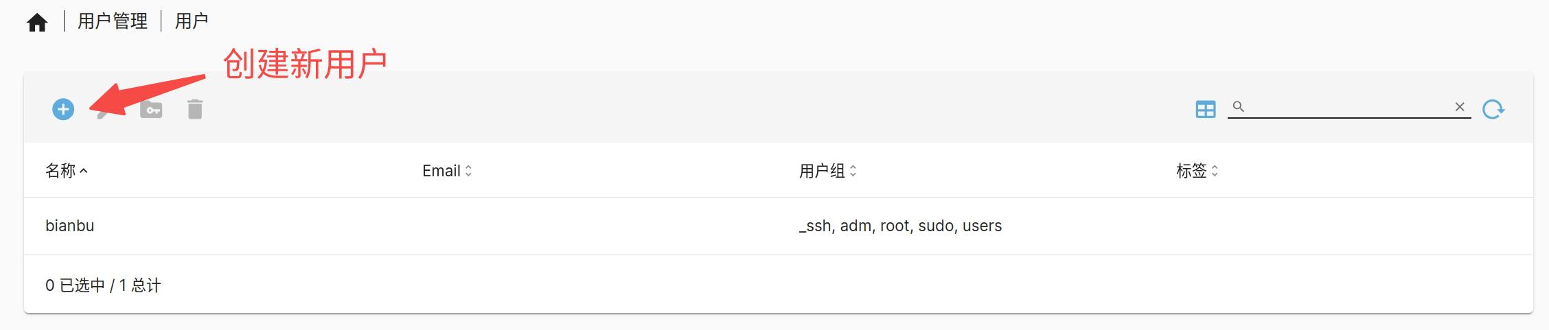 点击“用户 -> 用户”,创建用户(以 bianbu 用户为例,设置用户名和密码均为 bianbu)。
