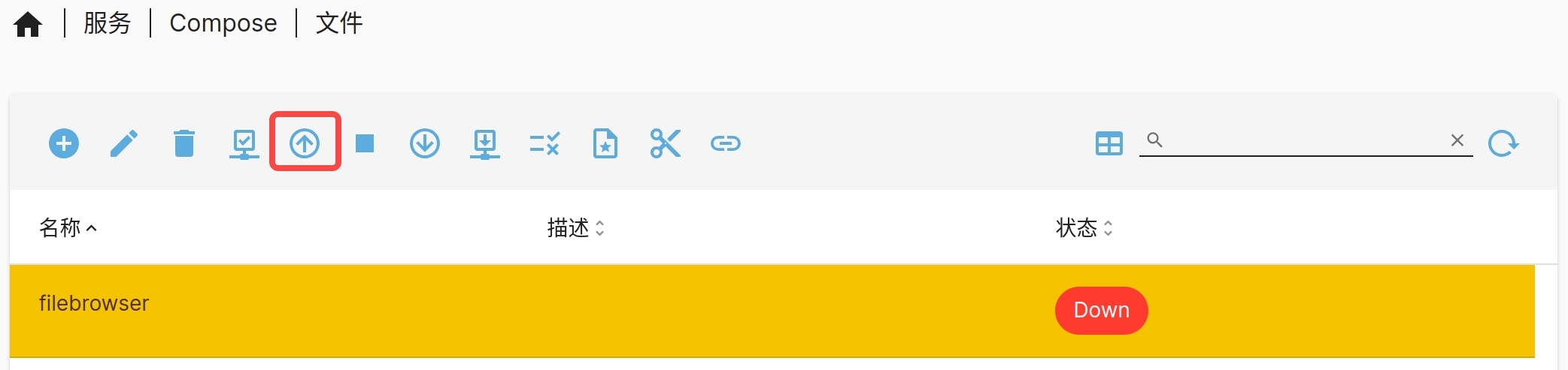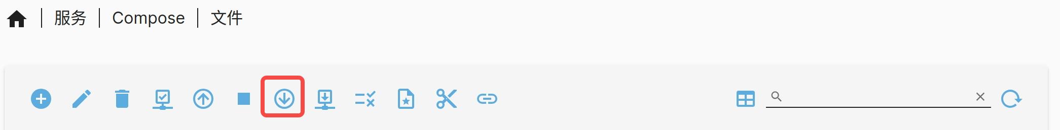 填写之后,点击保存,等待检查 docker-compose.yml 文件格式。检查无误,点击“⬆️”按钮拉取服务。