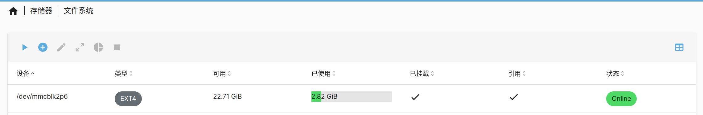下载 sharerootfs 插件之后,点击“存储器 -> 文件系统”,可以看到 rootfs 已挂载。