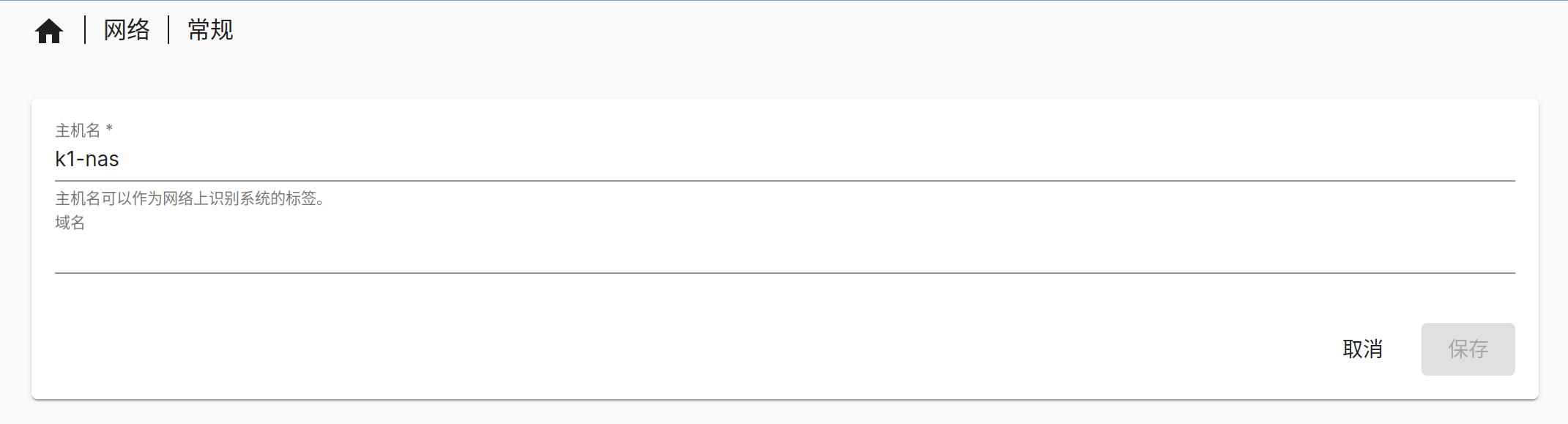 点击“网络 -> 常规”,设置主机名。点击“保存”。