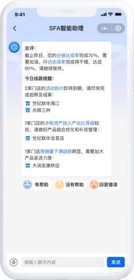 通过AI生成个性化的销售话术,针对不同场景和客户提供针对性的话术建议,能够有效提升渠道铺货和业务代表销售新品的成功率,从而提高整体销售业绩。