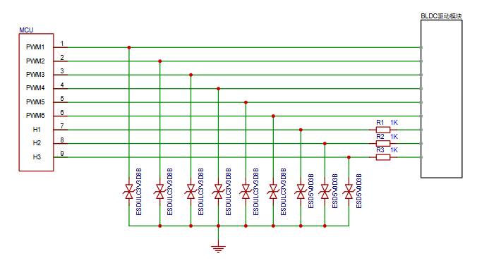 MCU接口: MCU 控制 BLDC(无刷直流电机)通常涉及多种类型的接口,常见的有 PWM 输出接口、霍尔传感器输入接口等;