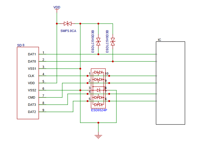 ESDLC5V0D3B | ESD | SD卡接口 | 浪涌、静电 | SOD323 |