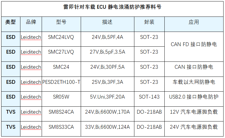 “雷达传感器总被静电打坏”“电池管理系统过不了抛负载测试”“高速总线防护后信号总衰减”…… 这些问题看似零散,实则都指向车载电子的核心威胁 —— 静电放电(ESD)与供电轨瞬态冲击。