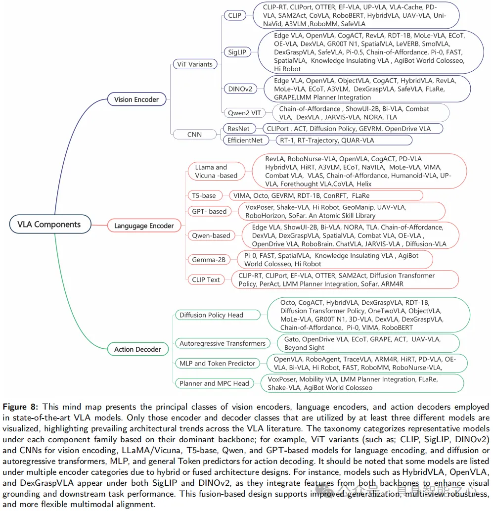 ResNet、EfficientNet 等基于 CNN 的编码器则出现在 CLIPort、ACT、RT-1、QUAR-VLA 等模型中;