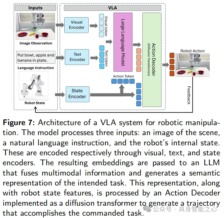 1.2 VLA 典型结构VLA 模型典型结构如下,围绕视觉编码器、语言编码器和动作解码器三个关联模块构建