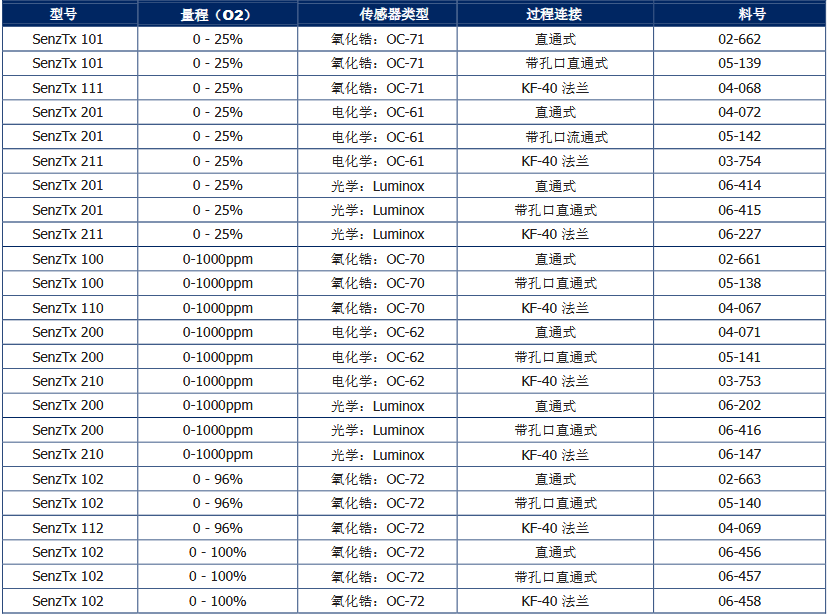 SenzTX氧气变送器选型: