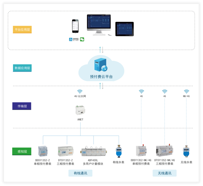 预付费管理:实现“先交钱、后用电”模式,支持微信、支付宝、银联等在线支付方式,大大方便用户充值,系统支持多级报警机制,余额不足时自动提醒,有效避免欠费