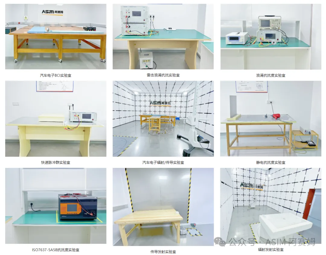阿赛姆配备专业齐全EMC实验室如:汽车电子BCI、雷击浪涌抗扰、浪涌抗扰度、快速脉冲群、汽车电子辐射/传导、静电抗扰度、ISO7637-5A5B抗扰度、传导发射、辐射发射、眼图测试、XRAY等实验室。