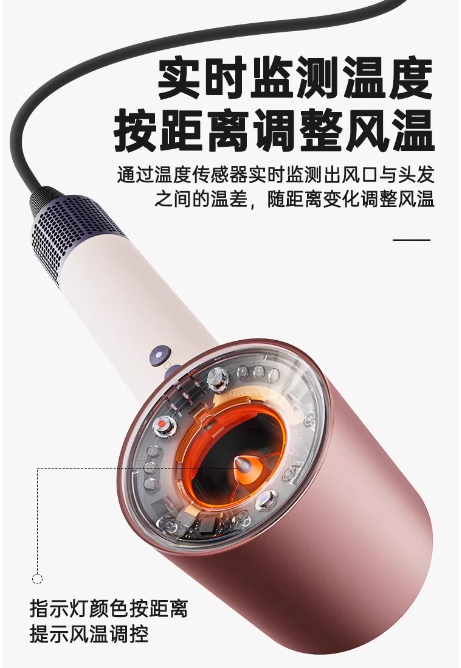 说起吹风机,相信大家都有过这样的经历:想快点吹干头发,结果风筒贴得太近,突然一阵灼热感袭来,吓得赶紧把吹风机甩开;想给发梢做个造型,却因为距离把握不准,温度不够,半天也定不了型。这种体验就像在走钢丝——太近烫头皮,太远没效果,似乎永远找不到那个"刚刚好"的平衡点。