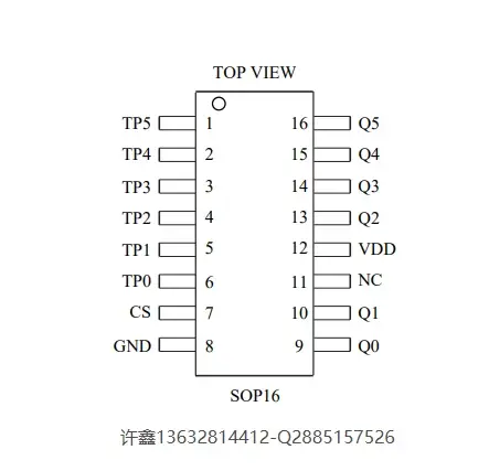 • Q0-Q5 脚为输出 输出低电平有效,多键模式 长按按键10S复位