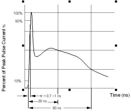 Figure 1 ESD pulse waveform according to IEC 61000-4-2