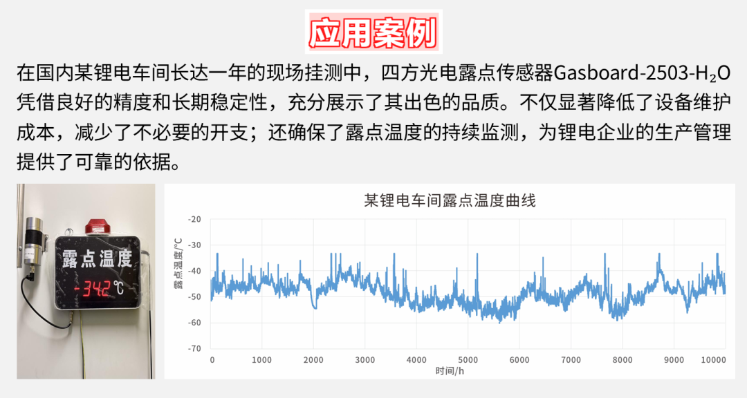 在锂电池制造迈向TWh时代的今天,对生产环境每一个细节的追求,都是赢得市场竞争的关键。四方光电露点传感器Gasboard-2503-H₂O,以其 “测量精准如秤、运行持久如钟”的卓越性能,契合了锂电行业对露点监测的核心需求。
