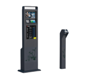 ACX10B-YHW-LL:户外使用,落地式安装,包含1台主机及5根立柱,支持刷卡、扫码充电。液晶屏支持U盘本地投放图片及视频广告