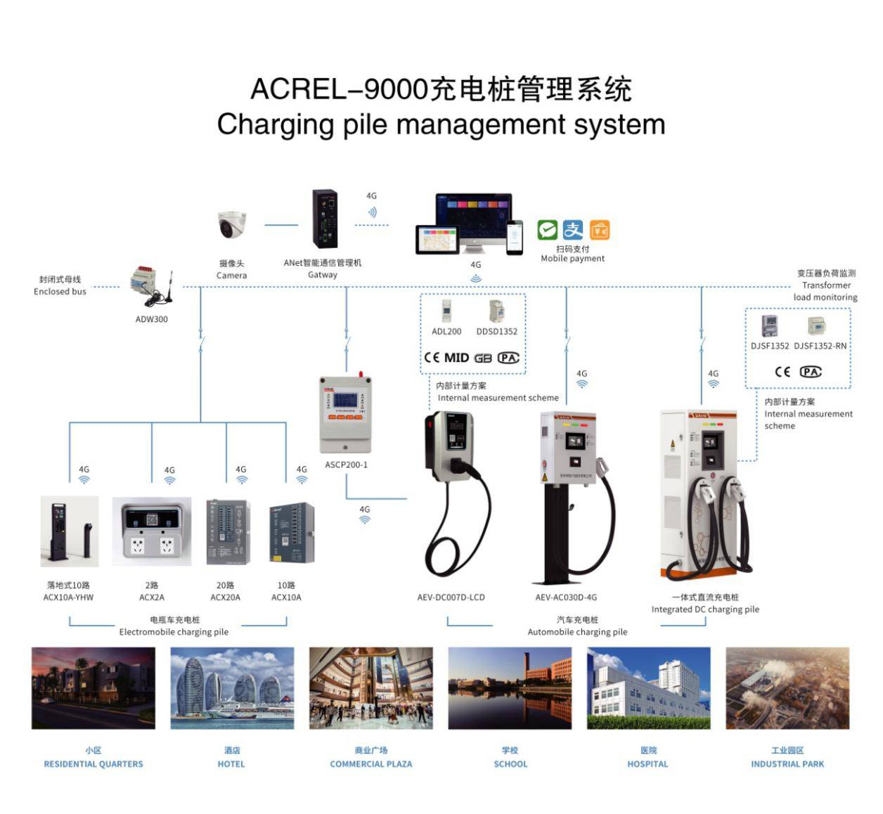 AcrelCloud-9000安科瑞充电柱收费运营云平台系统通过物联网技术对接入系统的电动电动自行车充电站以及各个充电整法行不间断地数据采集和监控,实时监控充电桩运行状态,进行充电服务、支付管理,交易结算,资要管理、电能管理,明细查询等。同时对充电机过温保护、漏电、充电机输入/输出过压,欠压,绝缘低各类故障进行预警;充电桩支持以太网、4G或WIFI等方式接入互联网,用户通过微信、支付宝,云闪付扫码充电。
