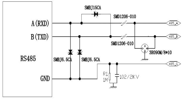 AB 差分线之间用15V 器件,主要考虑干线距离长、部份用户会将使用9V 电源供电,进差分信号放大增强。