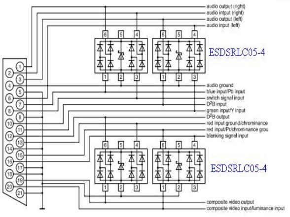 对于设计VGA输入接口PC的视频输出,DVD 、机顶盒等视频设备,这些集成式器件结合ESD保护和同步信号缓冲特点,我们的推荐的ESDSRLC05-4或ESD5V0D8.