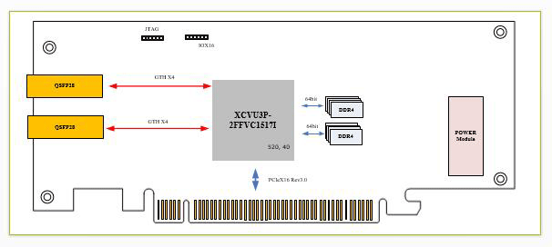 基于Xilinx UltraScale+16 nm VU3P芯片方案基础上研发的一款双口100 G FPGA光纤以太网PCI-Express v3.0 x16智能加速计算卡,该智能卡拥有高吞吐量、低延时的网络处理能力以及辅助CPU进行网络功能卸载的能力,达到最大化地节约CPU算力,降低CPU占用同时也降低功耗。光纤连接器为QSFP28,支持100G支持以太网等协议。