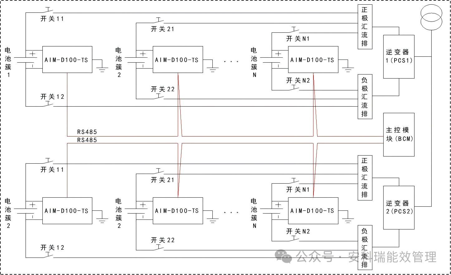 该储能系统中,设置了多个绝缘监测仪,但同一时间同一系统仅允许1只绝缘监测仪工作,因此需要控制模块进行控制。采用分时控制策略,采用通讯触发的方式,确保同一时间内只有1只绝缘监测仪在工作。