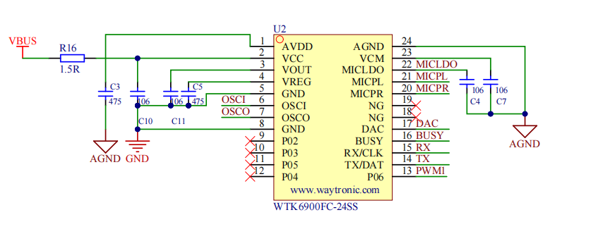 当WTK6900FC识别到鼾声以后也可以通过某个引脚持续的发出一个持续500毫秒的低电平信号。这个动作可以直接触发外部设备启动,比如让枕头里的气囊充气,或者让振动马达工作。这种方式响应快速,非常适合需要即时干预的应用场景。
