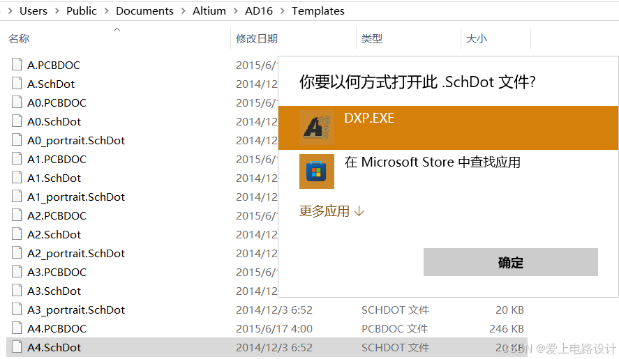 其中的 A0~A4.SchDot文件就是我们需要的模板文件了,带有 portrait 后缀的指竖向的文件形式。这里选取最常用的 A4.SchDot模板,以 DXP.EXE 打开并进行修改。