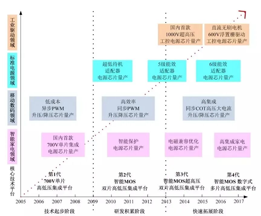 芯朋微作为国内高压电源和驱动类芯片的领先供应商,为众多电子行业知名企业提供功率集成电路产品和解决方案,目前在产的芯片包括四大类500多个型号,家用电器类、标准电源类、移动数码类、工业驱动类等产品年出货超过7亿颗芯片,建立了良好的品牌效应。