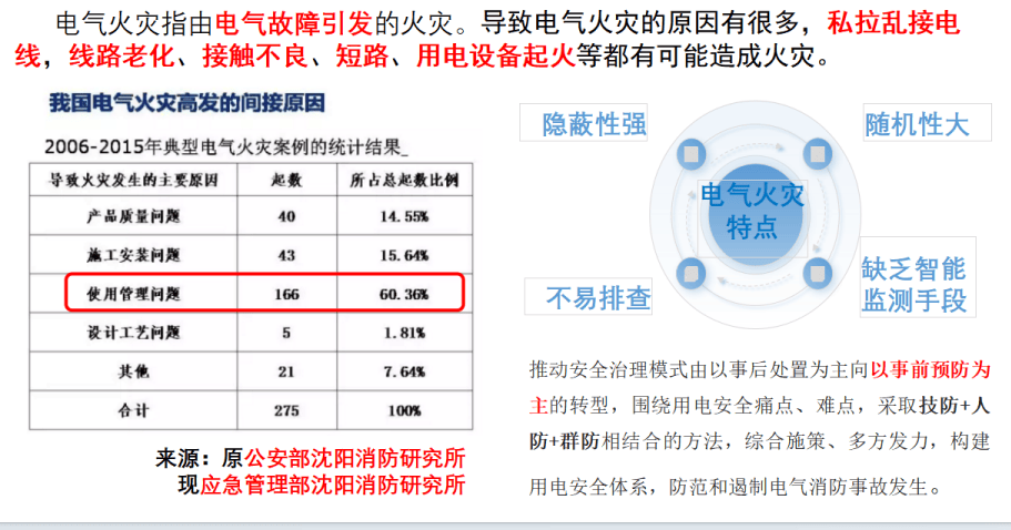 3.电气线路隐患:设备及线路因老化、腐蚀、绝缘破损等易产生漏电、短路、过负荷等渐变故障,隐蔽性强。