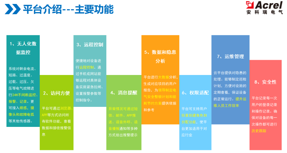 实时监测配电线路中的剩余电流、温度等参数,异常时及时报警,定位隐患位置。