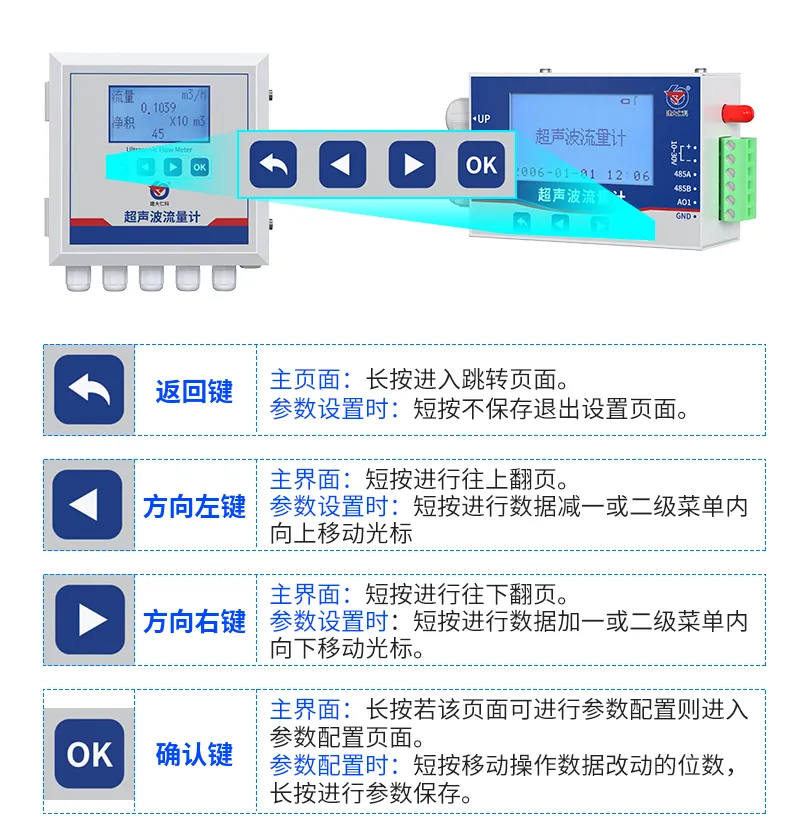 二、本地显示屏:实时数据直观可见,无需额外设备超声波流量计标配高清显示屏,可实时显示瞬时流量、累计流量、温度、热量、流速、时间等采集数据。用户无需外接电脑、仪表或其他辅助设备,在现场即可清晰读取当前管道内介质运行状态。屏幕界面逻辑简洁、数值醒目,支持中文菜单与参数显示,现场调试、巡检、核对数据更高效。本地显示既降低了系统配置成本,又提升了应急查看与快速诊断的便捷性,适合无人值守与人工巡检结合的运行模式。
