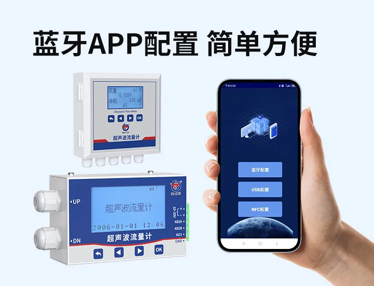 超声波流量计内置蓝牙通信功能,支持手机 APP 直连。用户在现场无需携带电脑或编程器,通过手机即可完成参数设置、零点校准、单位切换、数据查看、历史记录导出等操作。蓝牙连接稳定、操作门槛低,大幅提升调试效率,尤其适合高空、井内、设备密集等不便操作的安装位置。配置完成后可离线运行,参数自动保存,断电不丢失。