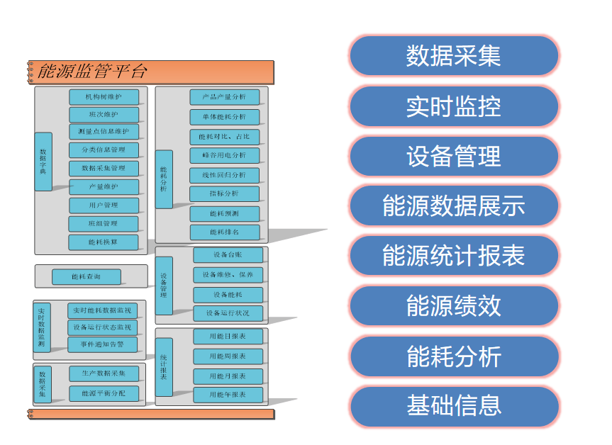 平台采用自动化、信息化技术和集中管理模式,对企业的生产、输配和消耗环节实行集中扁平化的动态监控和数据化管理。实时监测企业各类能源的消耗情况,通过数据分析、挖掘和趋势分析,帮助企业加强能源管理,提高能源利用效率和节能潜力,为节能改造提供数据依据。