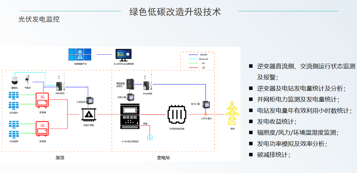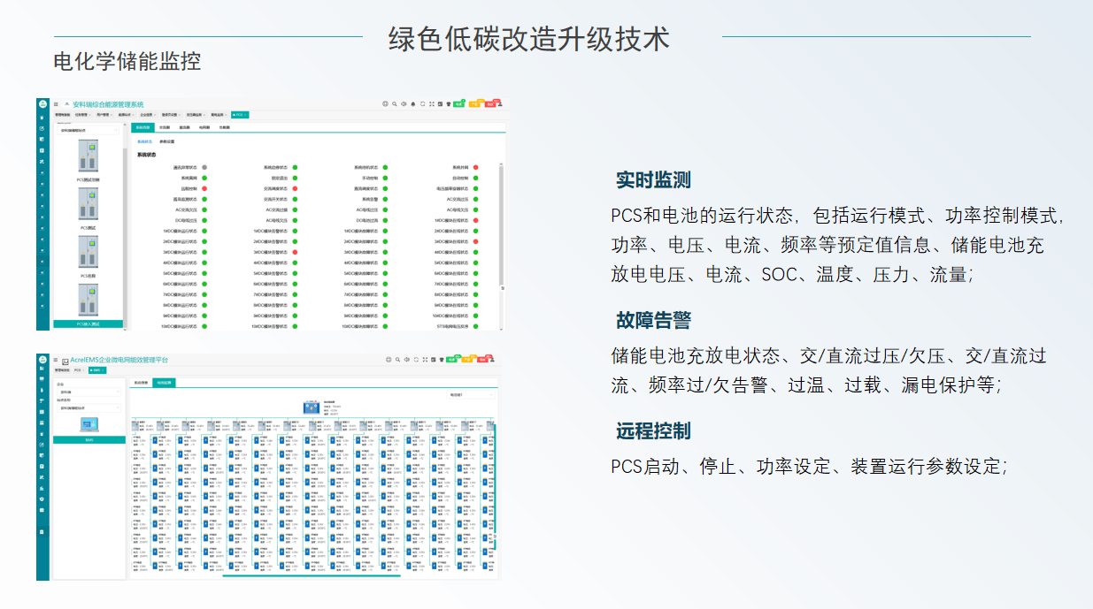 绿色能源管理系统是基于信息技术对能源生产和输送的全过程进行管理和监控的重要系统。绿色能源管理系统可以实现能源的监测分析与优化控制。通过对能源消化设备的运行情况进行实时监测,系统可以对关键性能指标进行详细记录并生成报告,为管理人员提供参考 。同时,系统可以结合监测数据及预设的运行规则对设备运行模式进行调整,从而达到降低能耗的目的.