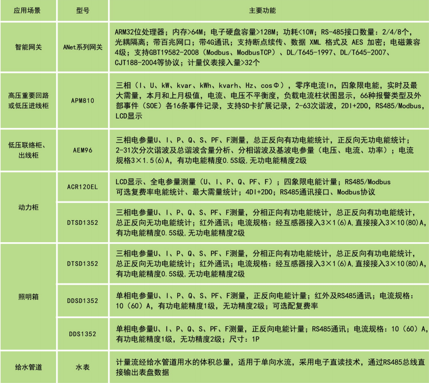 现场设备层:主要是连接于网络中用于水、电、气等参量采集测量的各类型的仪表等,也是构建该配电、耗水、耗气系统必要的基本组成元素。肩负着采集数据的重任,这些设备可为本公司各系列带通讯网络电力仪表、温湿度控制器、开关量监测模块以及合格供应商的水表、气表、冷热量表等。